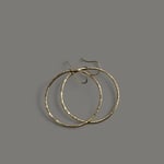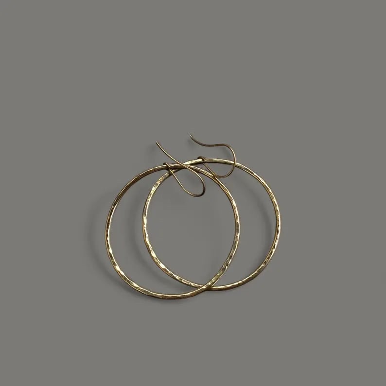 Classic, lightweight, and ready to wear every day. These hand-formed brass hoops have a subtle hammered texture and a warm golden tone that softens over time