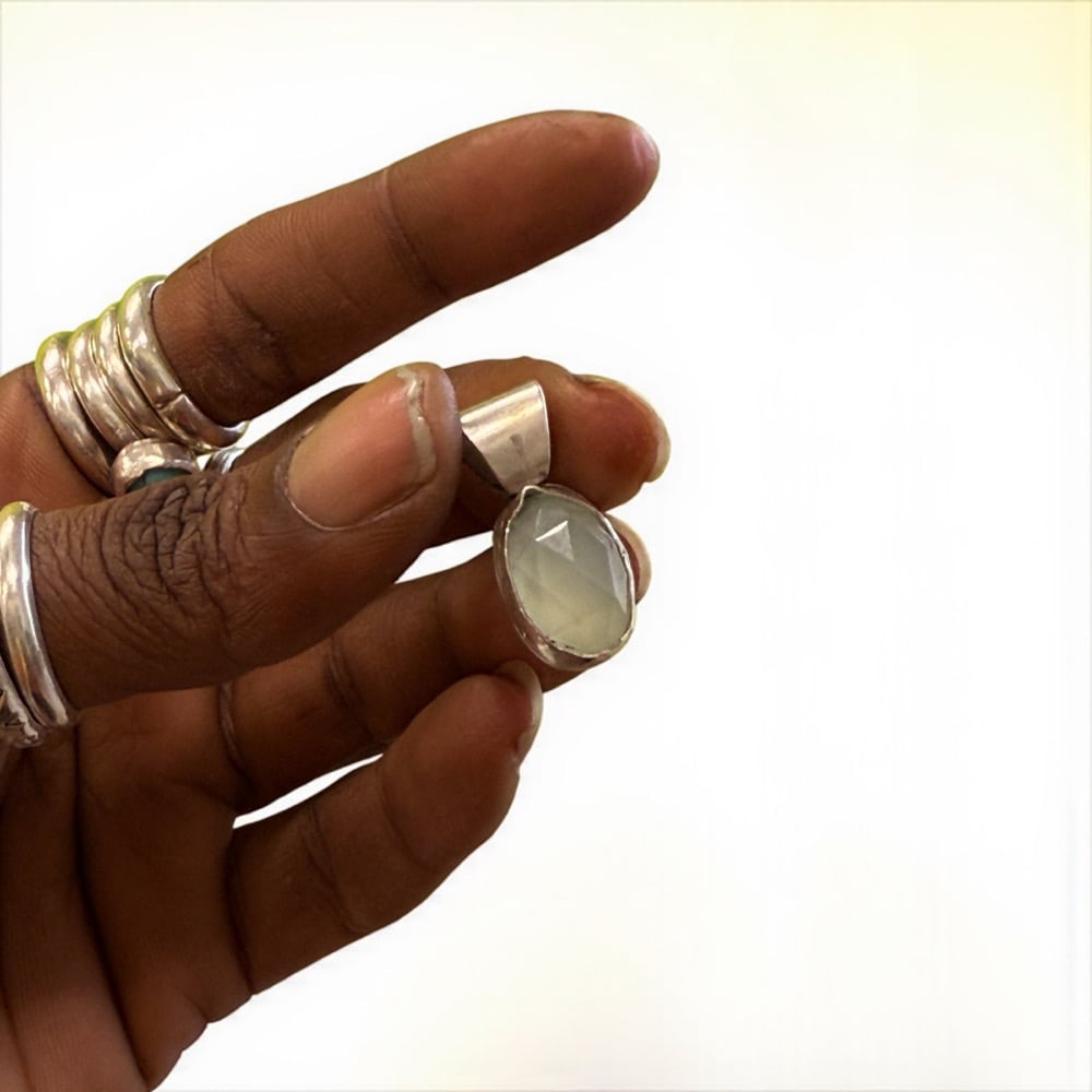 The Moonlight Pendant - Part of the MoonWave Collection, a series shaped by moonlit waters, shifting tides and the quiet strength found in flow. Each pendant is handcrafted by me with 925 sterling silver and natural aqua chalcedony, a stone known for it's soothing, wave like energy. Its soft blue glow mirrors the ocean under moonlight, a reminder to move with rythm, trust the currents and let yourself be carried toward new horizons.