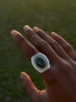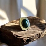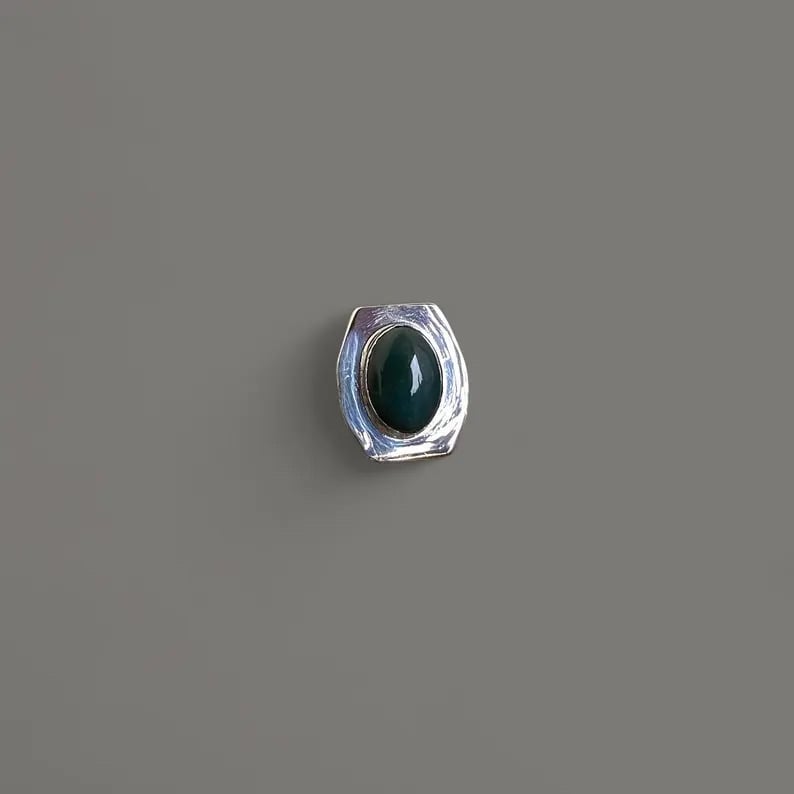 This one-of-a-kind ring is a little moody, a little mystical—and made to be worn by someone who walks their own path. Handcrafted in sterling silver, it features a rich forest green aventurine set in an organic, shield-like bezel. The irregular shape and high-polish finish give it a raw elegance.